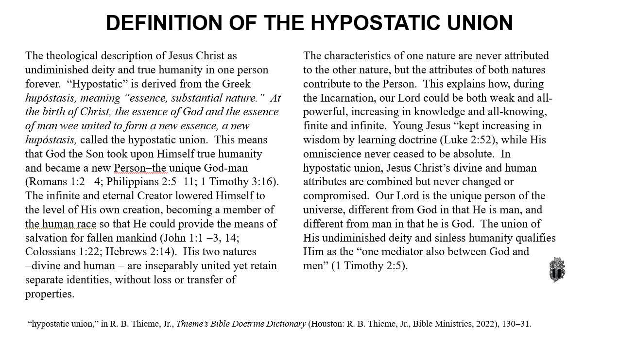 Definition of Hypostatic Union from Thieme’s Bible Doctrine Dictionary