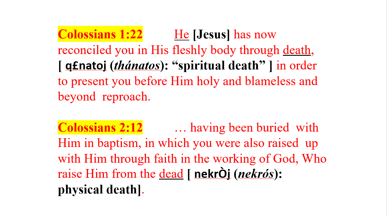 Colossians 1:22 and 2:12