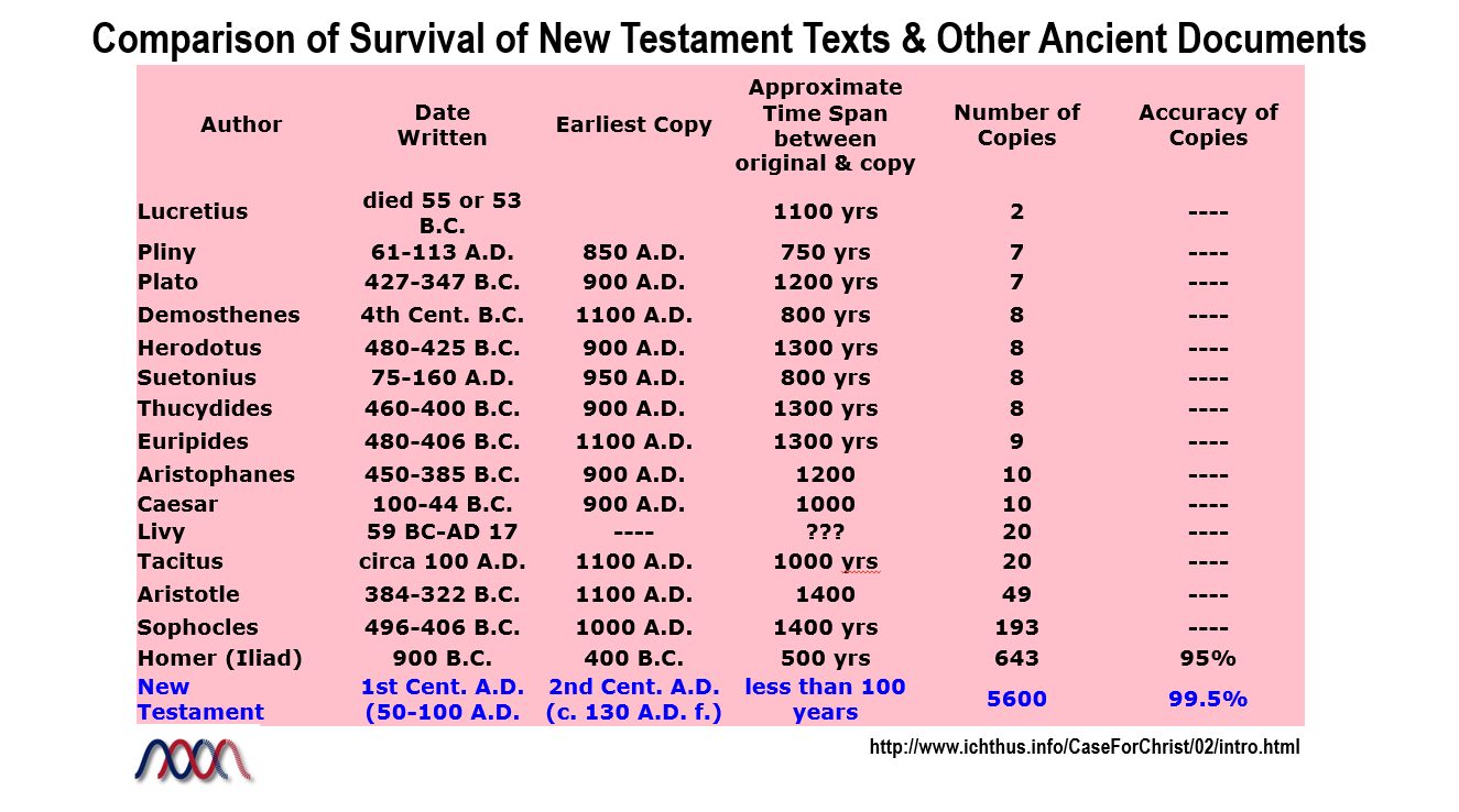 Comparison of Survival of New Testament Texts & Other Ancient Documents